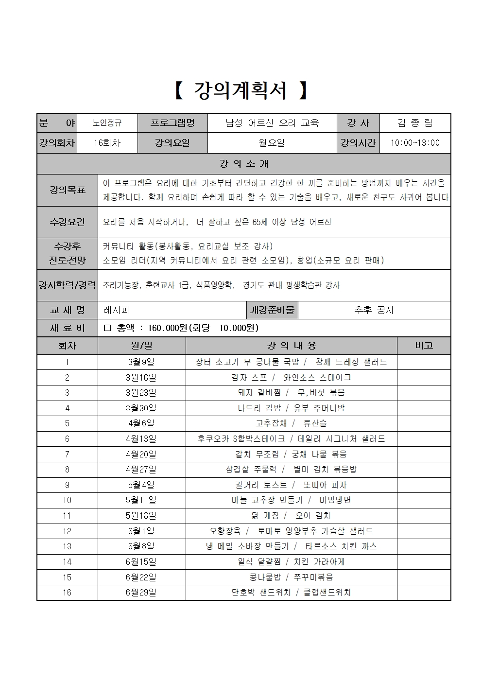 | 교육시간 | 매주 월 10:00 ~ 13:00 |