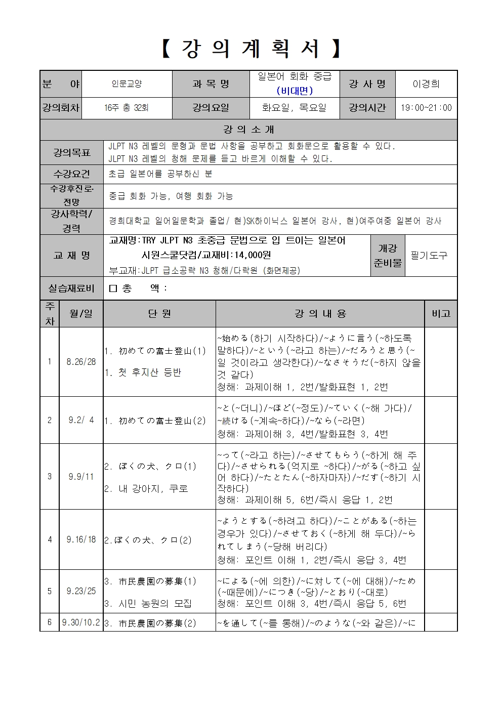 정규프로그램 2025년 하반기 정규프로그램 [비대면]일본어 회화 중급