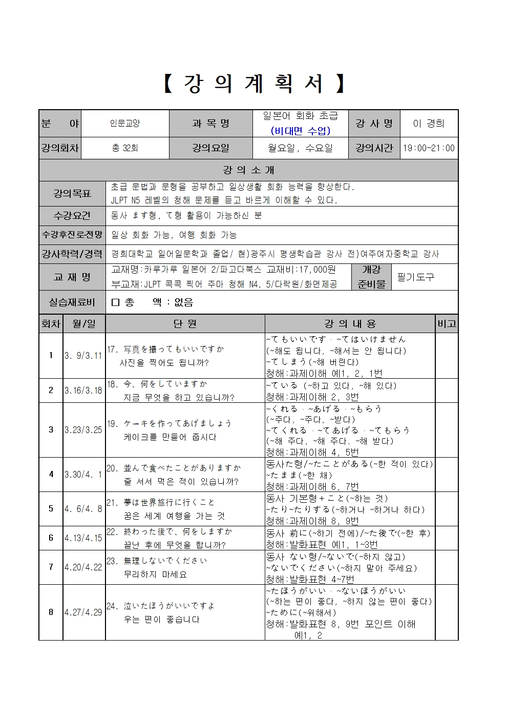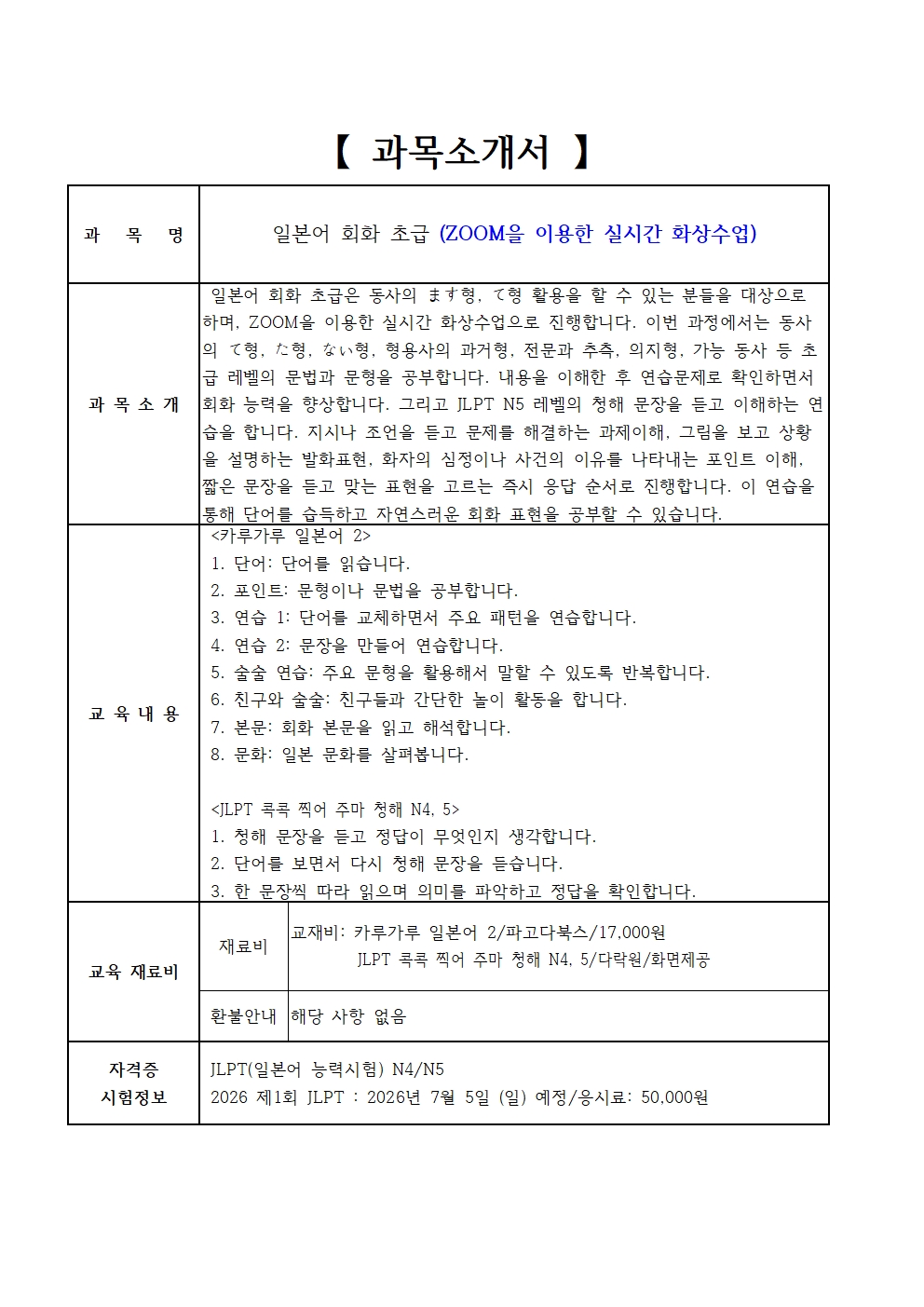 | 교육대상 | 성인 |